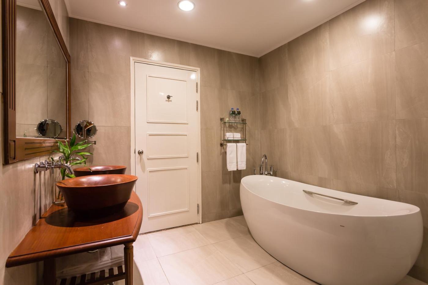 Deluxe Double or Twin Room. This air-conditioned deluxe room opens up to views of the river and the city. The seating area is fitted with a flat-screen satellite TV, sofa and a minibar. The en suite bathroom includes shower facilities, a hairdryer and free toiletries. Complimentary bottled water and teacoffee facilities are replenished daily. Please note that this room type can accommodate an extra baby cot (subject to availability upon request). Benefits include: - Cold towel upon arrival - Complimentary daily two bottles of drinking water in room - Complimentary shuttle services (As per hotel schedule) - Daily turndown service every evening - Buy 1 get 1 free drink at Champa Café during Happy Hour (16:00 to 18:00 hrs) - 10% discount on food and beverages - 10% discount on spa treatments at Jasmine Spa ;